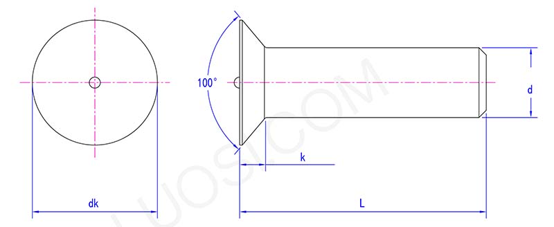 Най-голямата точка за продажба на 100° плоски шпилки е техният дизайн с плоска глава. 100-градусовата плоска глава е по-удобна за използване в някои специални сценарии. Може да се съчетае идеално със 100-градусови вдлъбнати отвори и след монтажа повърхността е изключително равна без почти никакви издатини. Много е практичен на места с високи изисквания за плоскост на външния вид.