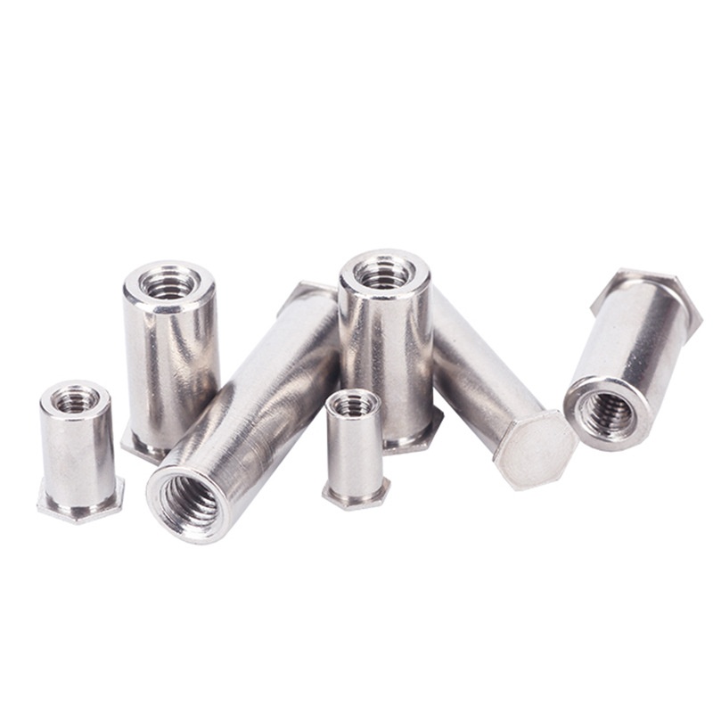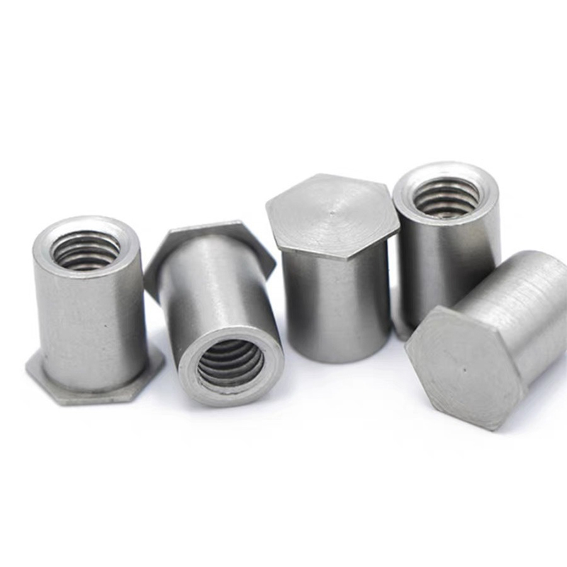 Сляпа дупка плоска глава с шестоъгълна стомана с орехови въглеродни въглеродни въглеродни се правят на строги стандарти за размер като ASME B18.7 или DIN 7337, така че те могат да бъдат разменени лесно. Основните размери включват размера на резбата (като M3 до M12), диаметърът на главата и ъгъла (обикновено 90 ° Counteryins), ширина на шестоъгълника (измерване на AF) и диапазон на захващане (колко дебел може да бъде материалът). Тези нитове на ядки се предлагат както в метрични, така и в имперски типове нишки. Важните спецификации също обхващат дълбочината на сляпата дупка и размера на цевта на нитове.