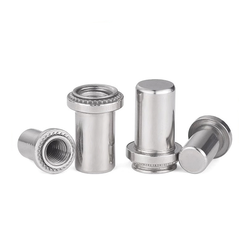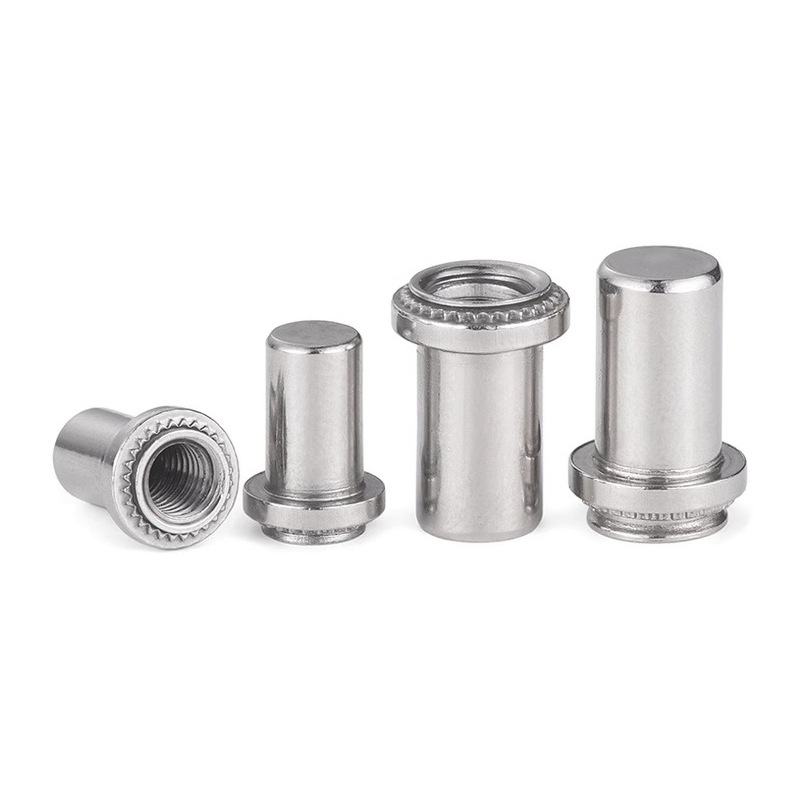 За да инсталирате гайката за запечатване на въглеродна стомана, се нуждаете от специализиран инструмент за клиниране и комплект, който точно съответства на размера на гайката. Първо, поставете гайката в предварително пробит отвор в ламарината. Тогава инструментът прилага контролирано налягане, което кара пилота на гайката и коктейлът да потънат в околния метал. Този процес на студено формиране заключва гайката от неръждаема стомана на място за добро и в същото време той присвива вградената уплътняваща шайба към панела. Ето как създава уплътнителното уплътнение, което прави тези ядки уникални.