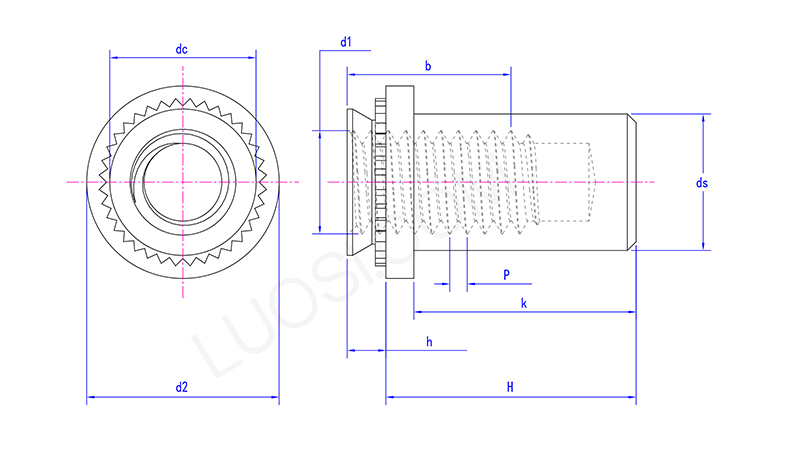 Уплътняващата гайка за привличане е доста проста, можете да използвате стандартни пневматични или хидравлични инструменти за клин. Ето как работи: Първо, поставете гайката в предварително пробит отвор, след това използвайте комплект за удар и умрете, за да окажете натиск. Умиращата притиска ламарината около яката на ядката на ядката, образувайки плътна механична ключалка в една бърза стъпка.