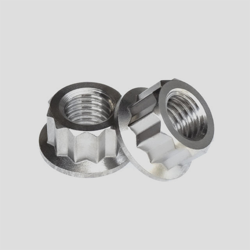Тази рентабилна гайка от 12 точки има много отличителен външен вид - има 12 -точкова (еквивалентна на двойна шестоъгълна) повдигната глава. Този дизайн осигурява 30-градусова контактна повърхност за ръкава, така че дори при ограничено пространство може да се приложи по-голям въртящ момент.