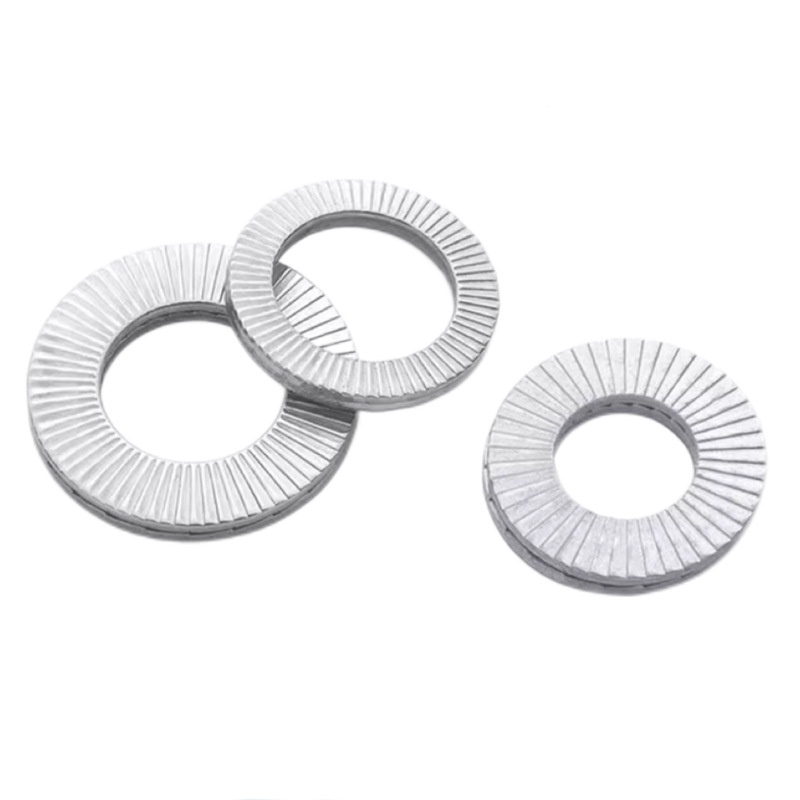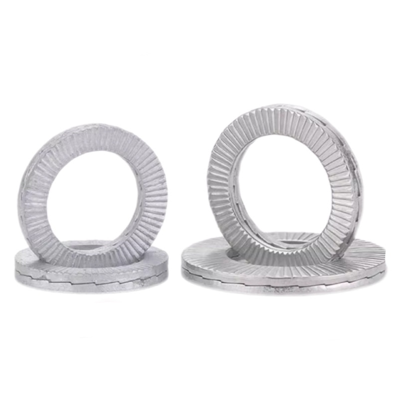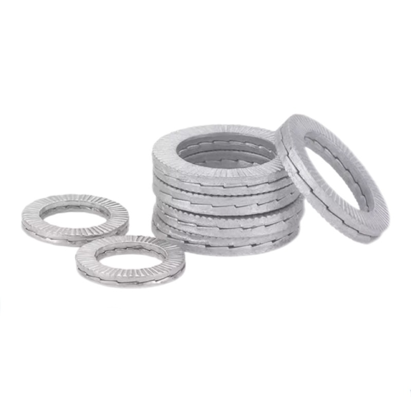 Двустранните самозаключващи се шайби са идеални за закрепване в среда с висока вибрация. Техните приложения обхващат критични сектори като автомобилостроенето, тежки машини, селскостопанско оборудване, аерокосмически и железопътни системи, където сигурното закрепване е абсолютно ключово за цялостната безопасност.