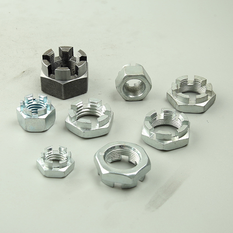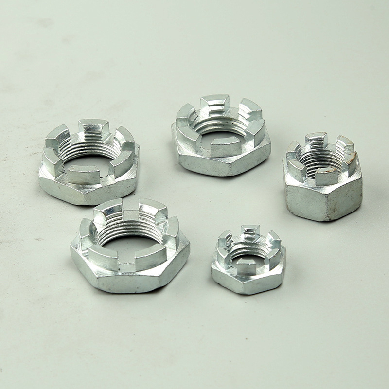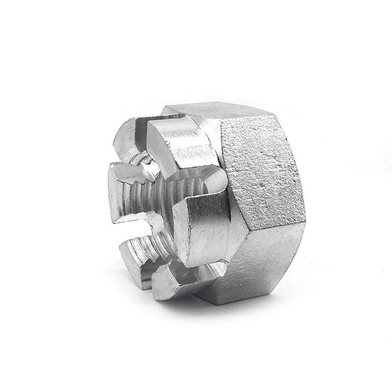 О: Основната работа на двойна закрепена гайка с корона със слот е да се заключи плътно върху болта или шпилка с резба - така че не се разхлабва, когато има вибрации. Той има този дизайн на короната (или кастелира, като с малко прорези), който ви позволява да плъзнете щифт или предпазен проводник през слотовете и дупката в болта. Това създава солидна механична ключалка, която няма да се подхлъзне.