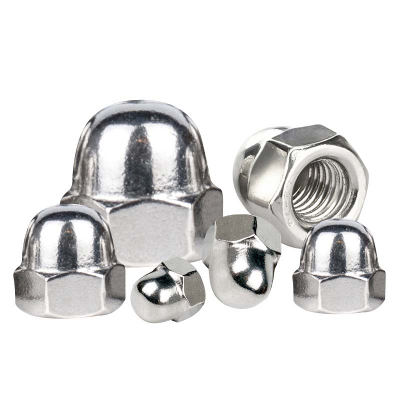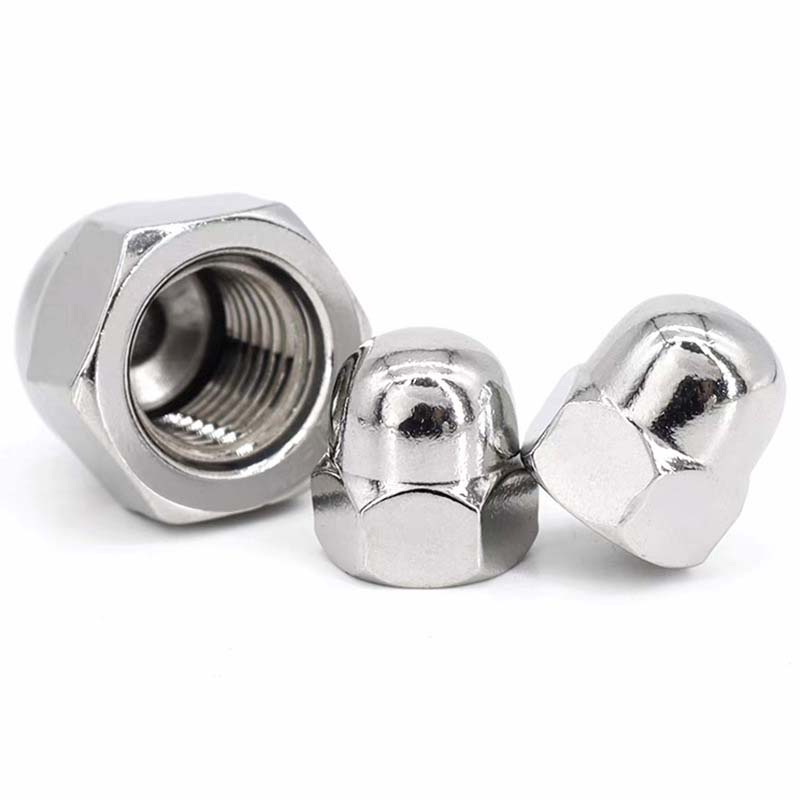 TheШестоъгълна куполаДизайнът е прост, но умен. Шестнадесетичната глава дава твърдо захващане за бързо стягане, докато купола капачки разхвърля болт. Материали като поцинкована стоманена борба с ръжда и някои версии включват найлонова вложка за допълнително захващане (макар и не всички). Той е леко по -обемна от плоските ядки, но този купол добавя безопасност и предпазва мръсотията от нишки.