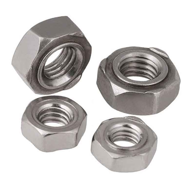 Шестоъгълните заварени гайки имат шест повърхности и могат лесно да бъдат захванати с гаечен ключ. Има уникален дизайн. Едната страна е като обикновена гайка и има отвори с резба, докато другата страна има три малки точки за запояване и повдигната платформа. Може да бъде съвместим с болтове с различна дебелина.