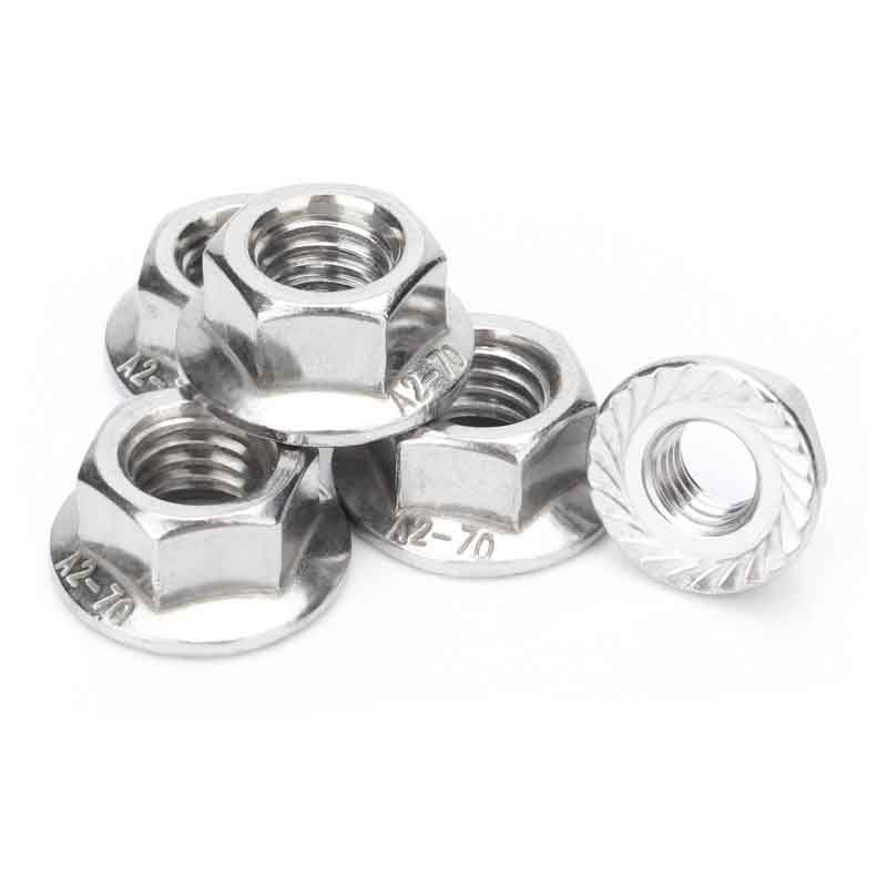 Високопрецизните шестоъгълни гайки с фланец са направени предимно от средна въглеродна стомана или легирана стомана. Тези гайки преминават през процес на високотемпературна топлинна обработка за постигане на високи степени на якост като 8, 10 и 12 съгласно стандартите ISO или SAE. Чрез специални процеси на топлинна обработка като закаляване и темпериране, нейната якост на опън, граница на провлачване и твърдост са много по-добри от обикновените ядки. След този процес на топлинна обработка гайката може да издържи на високо налягане и може да се използва стабилно в тежки среди. Така те работят надеждно за дълго време.