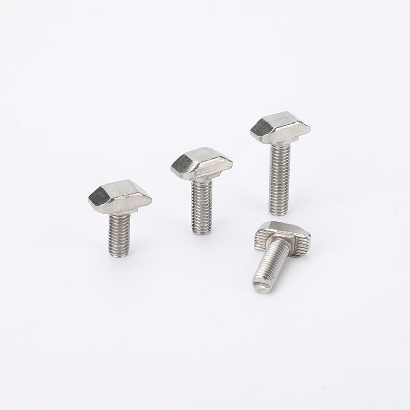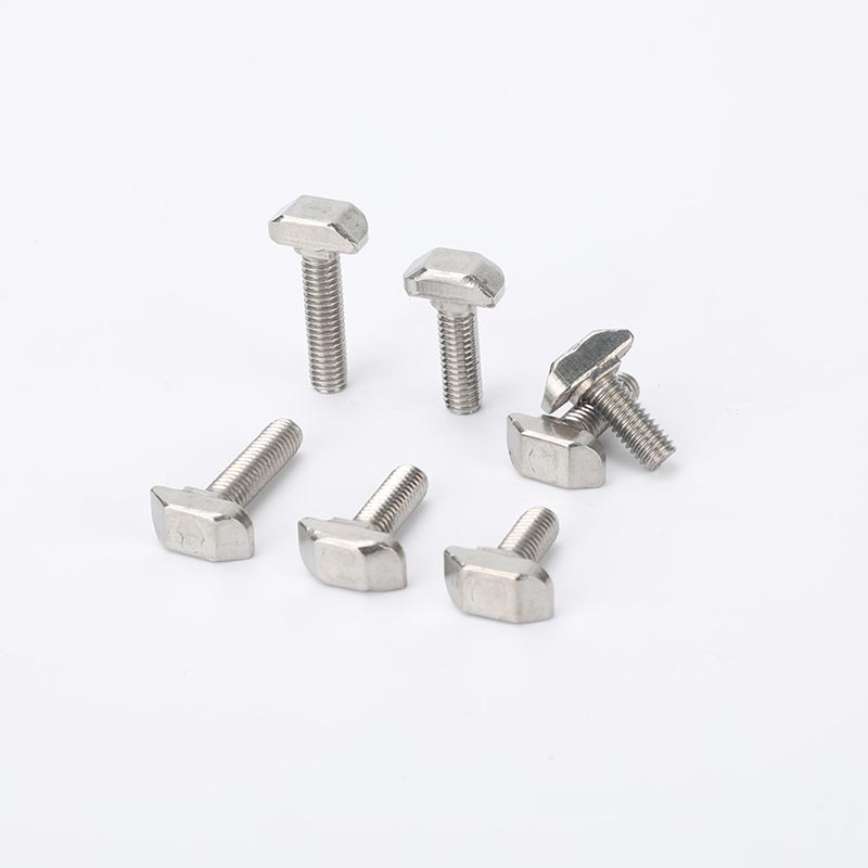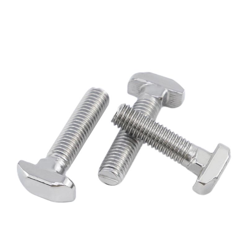 Главата наM6 T Shopе Т-образна, която улеснява позиционирането и работата по време на инсталирането. Той е свързан с квадратната шия в долната част, което може да попречи на болта да се върти заедно с гайката, когато се затяга. Отдолу е винт с резба.