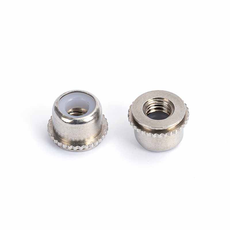 Миниатюрни самозаключващи се ядки за клин могат да се използват на тесни места или върху тънки материали. Котвата на резбата е силна и ударна, размерът е малък и има самозаключителен дизайн. Има различни материали, от които да избирате. Те могат да бъдат инсталирани от едната страна и са подходящи за използване в индустрии със сравнително високи изисквания като електроника, аерокосмическо пространство, медицинско оборудване и прецизно инженерство.