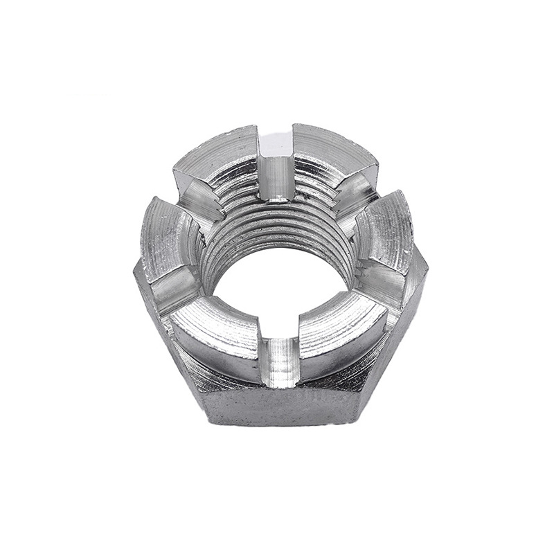Тази положително заключваща гайка на короната с слот се използва широко в тежко промишлено оборудване, като преси, системи за предаване и въртящи се шахти и т.н.