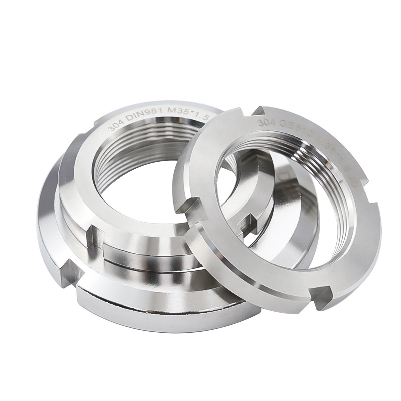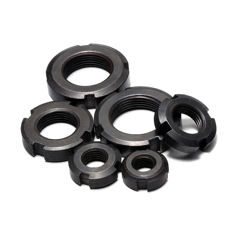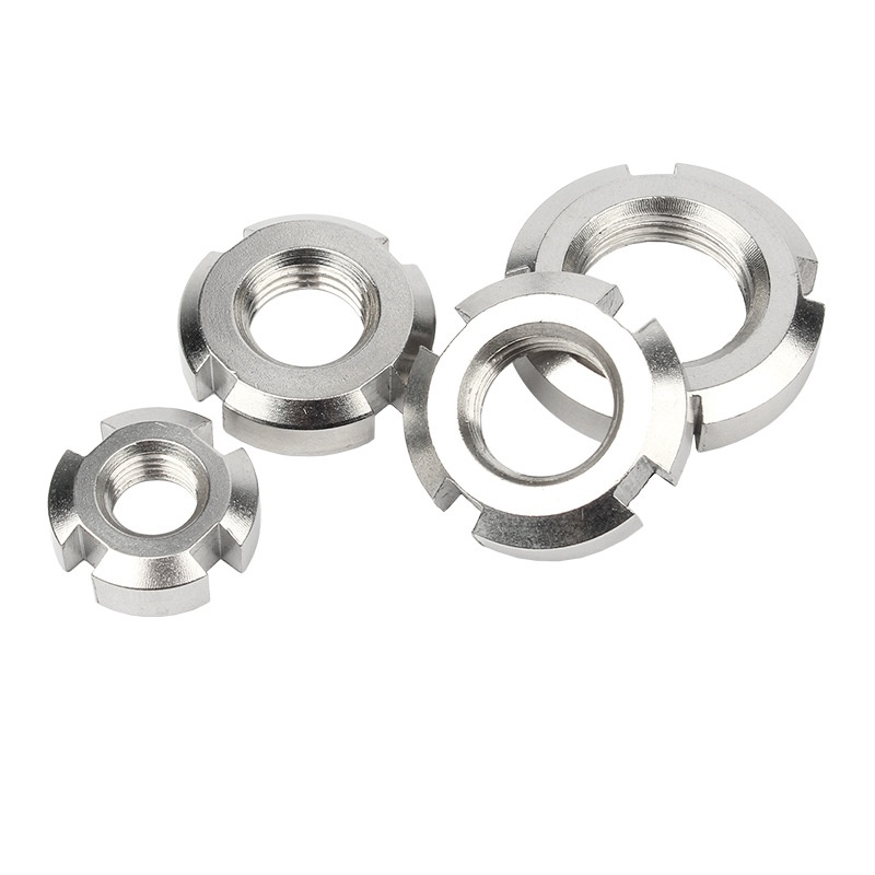 Индустриалните машини широко използват тези положително заключващи шлицови заключващи кръгли гайки - особено в среди с висока вибрация като скоростни кутии, преси и транспортни системи. Кръглата форма на тези гайки ги прави лесни за работа, а заключващите компоненти вътре могат да ги предотвратят от разхлабване, когато има динамично натоварване.