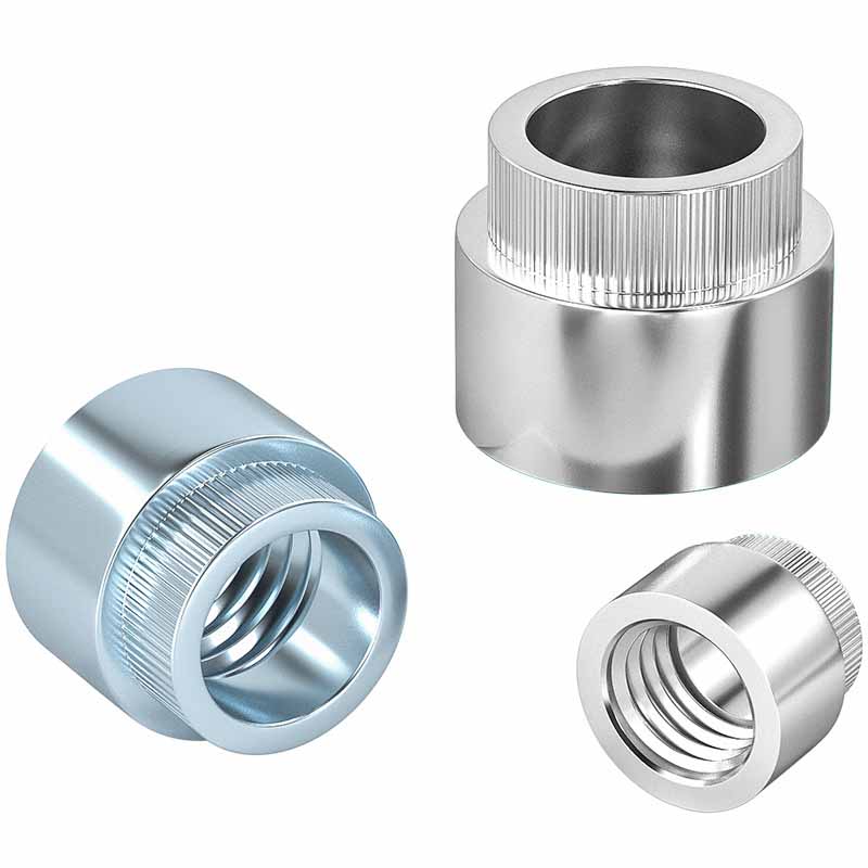 Междувременно частта с кръглата гайка има редовни нишки вътре. Големият фланец върши две работни места: той разпространява силата на изцеждане навън, така че да не изтръпва тънките материали, а коктейлирането (онези малки хребети) ухапва в повърхността, за да спре целия кръгъл храст да се върти, когато включите болт навън или навън.