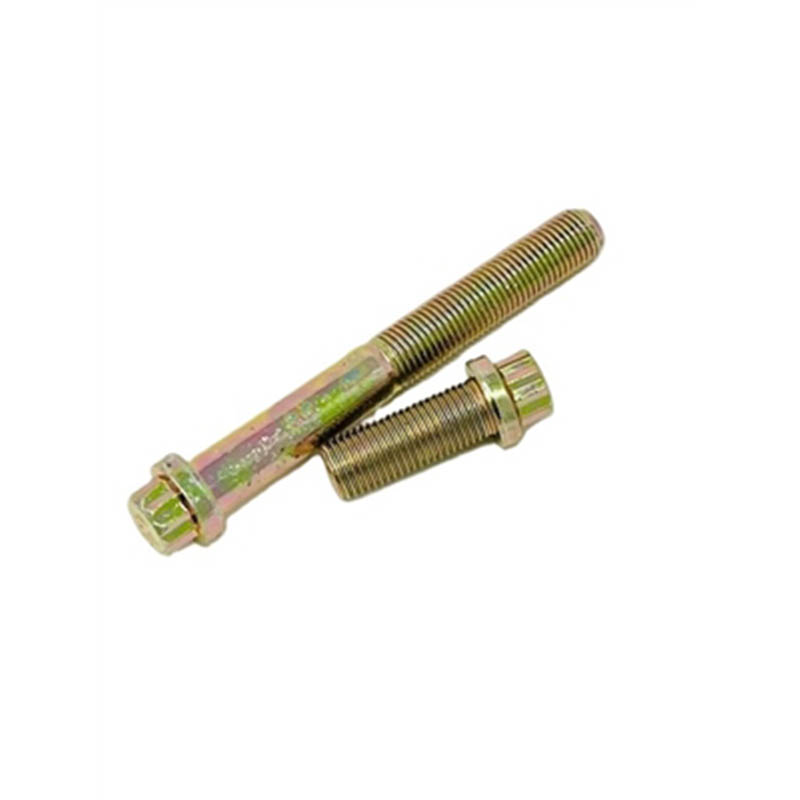 Тези стоманени 12-точкови фланцови болтове с висока якост на опън имат стандартна, практична форма без допълнителни декоративни детайли. Горната част е 12-странна глава, направена да работи със съответстващо 12-точково гнездо за затягане или разхлабване. Точно под главата има широк плосък фланец, който работи като вградена шайба, така че няма да имате нужда от отделна шайба за повечето задачи. Валът под фланеца е прав, с гладки, равномерни резби, които минават надолу, за да паснат на гайки или предварително нарязани отвори. Няма груби ръбове или неравности, които биха затруднили монтажа. Цялата закопчалка е компактна и солидна, направена така, че да лежи плоско срещу повърхности за плътно прилягане. Всяко парче има едни и същи точни размери, така че всяко изглежда и пасва по един и същ начин - това го прави лесен за използване за многократно сглобяване или бързи смени.