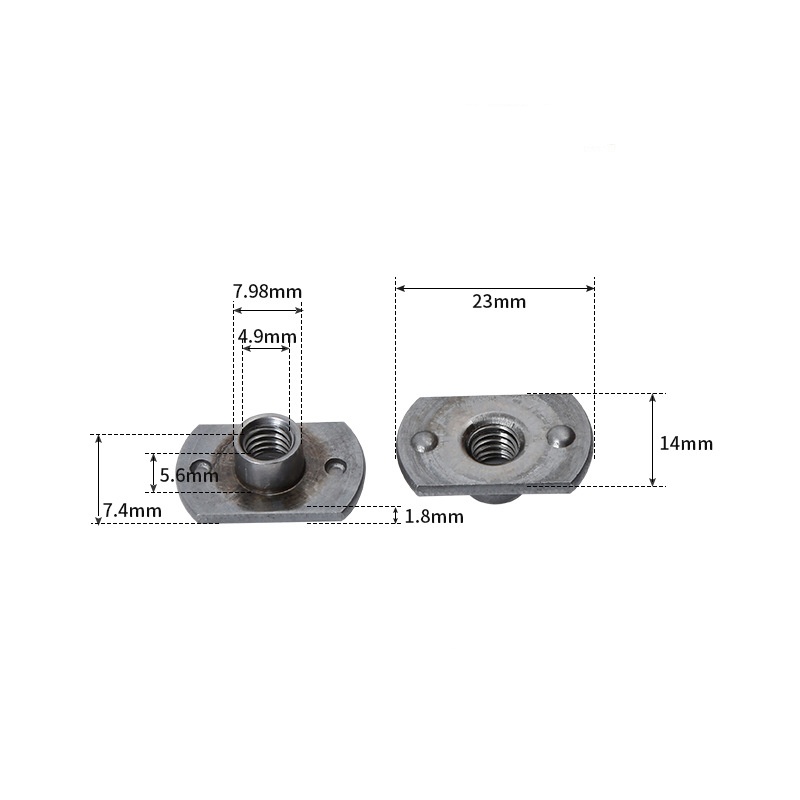 Нашите стандартни безкомпромисни заваръчни гайки в стил Т са изработени от въглеродна стомана. Обичайните защитни облицовки са цинково покритие-хладно или жълто хромат-и електро-галванизиране, които помагат да ги предпазят от ръжда.
