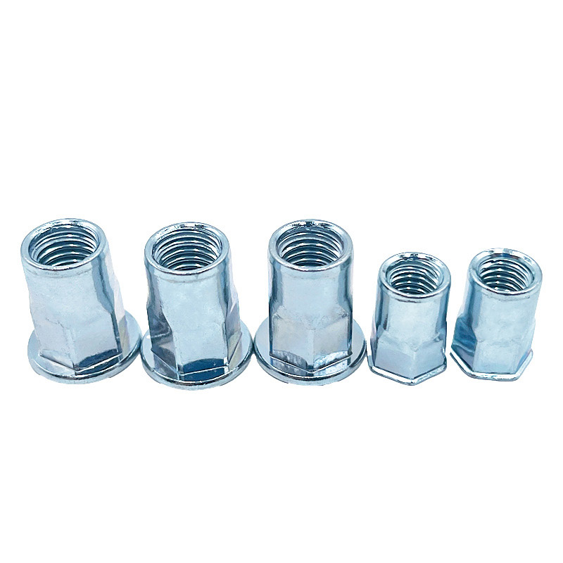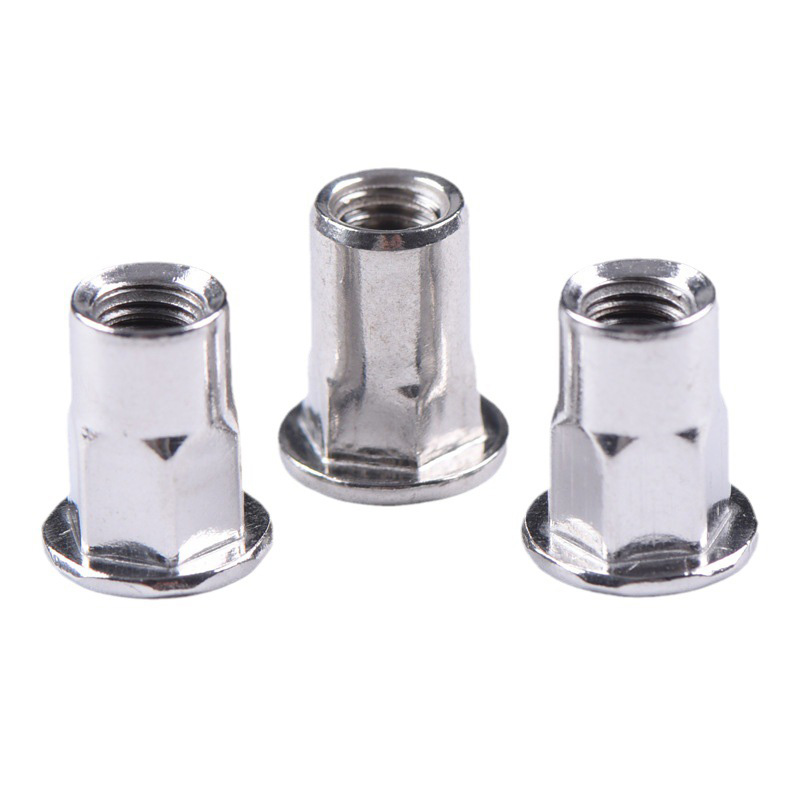 Универсалната шестостенна нитова гайка има шестоъгълно тяло. За разлика от кръглите, тази форма го предпазва от въртене, след като бъде инсталиран. Това е ключова част от неговия дизайн – той е направен да пасва в съответстващи шестоъгълни отвори. По този начин, когато затягате винта, гайката няма да се върти заедно с него. Налични са различни видове, като стилове с пълен шестоъгълник и полушестоъгълник. Главите също се предлагат в опции като плоска глава и малка вдлъбната глава. Можете да изберете това, което отговаря на вашите нужди, независимо дали искате да се изравни с материала или просто да има малка проекция след монтажа.